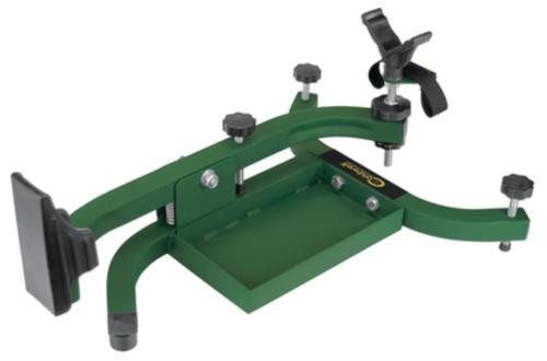 A smooth pivoting elevation system is controlled with a single knob making adjustments onto target fast and precise. The heavy duty steel construction provides a stable and solid shooting platform. Its unique offset frame is designed to accommodate all rifles including detachable magazine rifles like the popular AR-15 platform as well as lever actions guns. The front support is height adjustable has a durable rubberized coating that will not scratch or mar your gun. The Lead Sled Solo has an integrated weight tray that will hold a single 25 pound bag of shot. The combination of the weight and a heavy duty spring between the frame members all but eliminates recoil on non-magnum calibers and greatly reduces recoil on all calibers. A welded steel brace covered with a durable rubber boot secures the butt of the gun while protecting it from abrasions. A strap integrated into the front support can be used to easily secure your rifle onto the rest.. Category. :. Gun Rests – Bipods – Tripods. Description. :. Lead Sled Solo