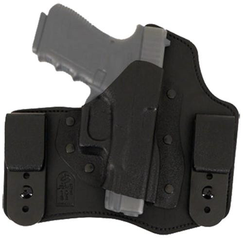 The Intruder is designed for both concealment and comfort. It is tuck-able and adjustable for both height and cant. The holster back consists of top grain premium steer-hide and the leather front component is finished with a supremely durable polyurethane film for lasting beauty. Each Intruder is molded from genuine Kydex sheet to exact specifications.. Category. :. Holsters. Type. :. Inside-The-Waistband Holster. Color. :. Black. Material. :. Leather. Model. :. Intruder RH. Finish. :. Smooth. Gun Model. :. S&W M&P Compact 9/40 3.5″. Mount Type. :. Belt Clip. Belt Size. :. Any