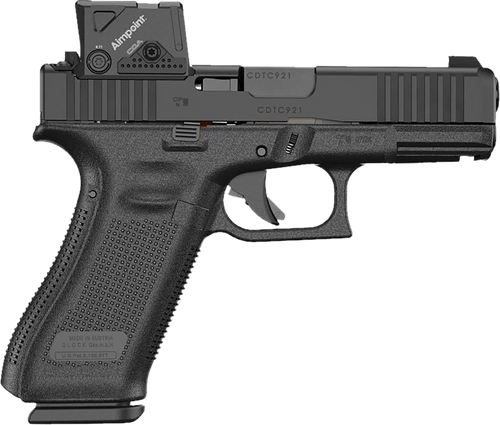 GLOCK 45 MOS 9mm, 4″ Barrel, Black, MOS8 Optic Cut, Aimpoint COA Optic, Ambi Slide Stop, Flared Mag Well, No Grooves, 10rd