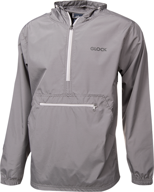 Glock Pack-N-Go pullover is 100% Polyester, wind and water resistant, lightweight and breathable. Packable into its own front pouch pocket with zipper closure for easy packing on the go.. Style. :. Pullover. Color. :. Gray. Size. :. Small. Material. :. Polyester. Closer Type. :. Half Zip. Proofs. :. Water, Wind Resistant