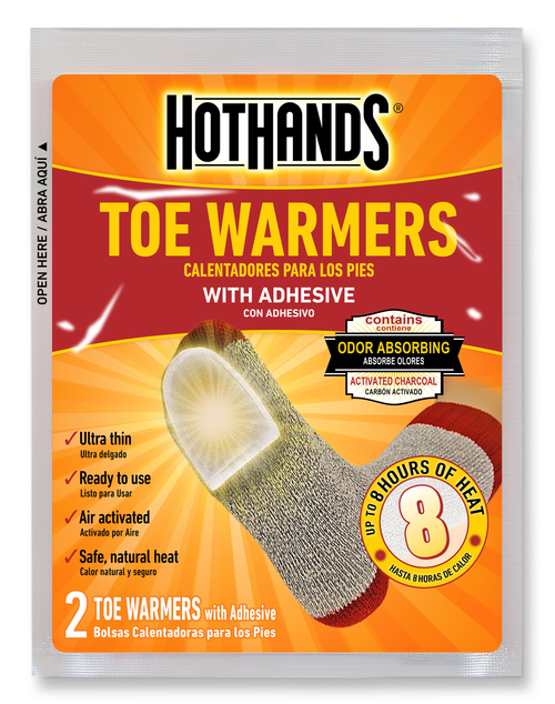 HotHands warmers are single use, air-activated heat packs that provide warmth and are ideal for keeping your toes warm when the temperature gets cold. Ultra-thin and ready to use (just shake to activate), HotHands provide up to 8 hours of heat for the toe area. Features ready to use, odorless fast heat; disposable; TSA approved and 8 hours of heat.. Heating Area : Toes