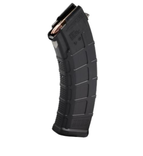 The PMAG 30 AK/AKM GEN M3 is a durable, polymer, lightweight 30rd magazine designed for Kalashnikov pattern rifles in 7.62x39mm (AK-47, AKM, AKS, SIG556R and others). It features steel reinforced locking lugs, removable flared floorplate, constant curve geometry, ribbed gripping surface, paint pen dot matrix panels for identification markings and an anti-tilt follower for the performance and military grade durability. Made in USA. Magazine counts as three US compliance parts for 922(r).. Caliber. :. 7.62X39mm. Capacity. :. 30. Finish. :. Black. Model. :. PMAG. Material. :. Polymer. Model Fit. :. AK/AKM