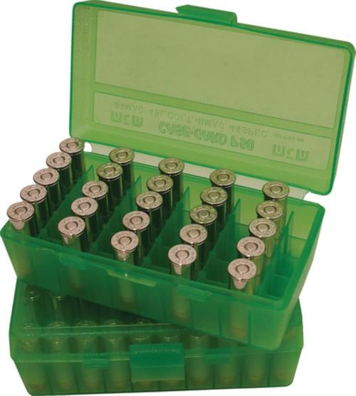 MTM Case Gard P50 Fliptop Box Handgun 45 ACP/10mm/.40 S&W/.41 AE Clear Green