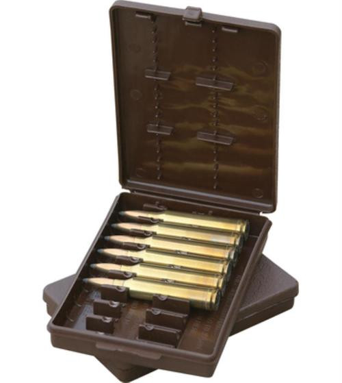 Ammo wallets are for shooters who wish to carry extra rounds in a shirt or jacket pocket. This Rifle Ammo Wallet holds larger caliber ammo securely, yet they can be removed quickly and quietly when needed. Wallet features individual slots for each round, a textured surface for easy grasping and Snap-Lok latch to prevent accidental openings.. This model holds 9 rounds of: 220 Swift, 243/270/308/348 Win., 250/300 Sav., 257 Roberts, 257/300/340/7mm Wby. Mag., 264/300/330/338 Win. Mag., 25-06/280/284/35/6mm/7mm–8 Rem., 300/375 H&H Mag., 30-06 Spr., 303 Brit., 30-40 Krag., 308 Marlin Express, 308 Norma Magnum, 333 Jeffery, 35 Whelen, 40-60 Marlin, 40-70 Sharps (Straight), 410 Shotshells, 44-40 Win., 445 Super Mag, 45-70 Govt and WCF, 6.5/7mm Rem. Mag., 6.5 Creedmoor, 6.5×50 Jap. Arisaka, 6.5×52 Italian, 6.5x54mm Mann-Schone, 6.5x55mm Swedish, 7×57 Mauser, 7×61 Sharpe 7 Hart, 7.5×55 Swiss, 7.65×53 Mauser, 7mm BR, 8mm-06.. Category. :. Utility Boxes. Type. :. Ammo Wallet. Model. :. Rifle. Finish. :. Brown. Size. :. 9 rd. Material. :. Polyethylene. Capacity. :. 9 rd. Hardware. :. Snap Latch