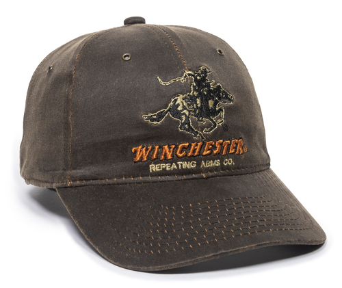 The Winchester unstructured cap features a mid crown profile, pre-curved visor, cotton sheeting sweatband and the Winchester Horse Logo.. Style. :. Unstructured. Color. :. Dark Brown. Size. :. OSFA. Material. :. Cotton. Closer Type. :. Snap Back