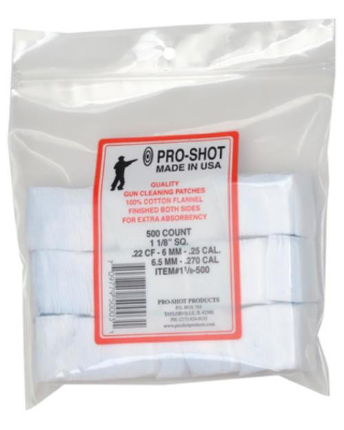 Pro-Shot Cotton Flannel Patches .22-.270 Caliber 1.125 Inch Square 500 Per Bag