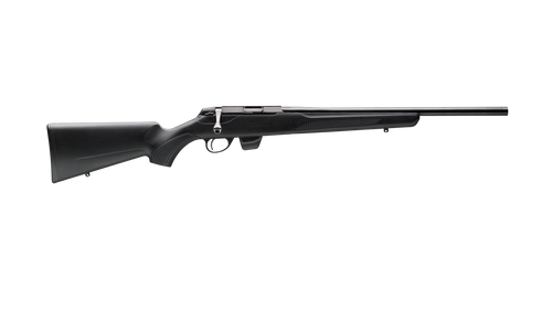 The T1x Hunter follows it’s bigger sibling features as a classic tool for small game hunting and target shooting. Symmetry design, checkered pattern and a fine finish are guaranteed. Features a mild recoil; threaded, cross over barrel; two-position safety; cost-efficient platform for practicing and hunting.. Action. :. Bolt. Caliber. :. 22 LR. Barrel Length. :. 16″. Capacity. :. 5+1. Safety. :. Two-Position. OAL. :. 33.70″. Weight. :. 5.50 lbs. Stock Description. :. Fixed