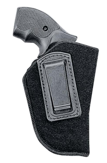 Uncle Mikes Inside the Pants Open Style Holster has ultra thin four layer laminate no thicker than conventional suede leather holsters. The internal moisture barrier will not transmit perspiration to gun.. Category. :. Holsters. Type. :. Inside-The-Waistband Holster. Color. :. Black. Material. :. Soft Suede/Laminated/Nylon. Size. :. 10-2. Model. :. Inside the Waistband. Finish. :. Textured. Gun Model. :. Small Autos .22-.25 Cal.. Mount Type. :. Belt Clip. Belt Size. :. Any